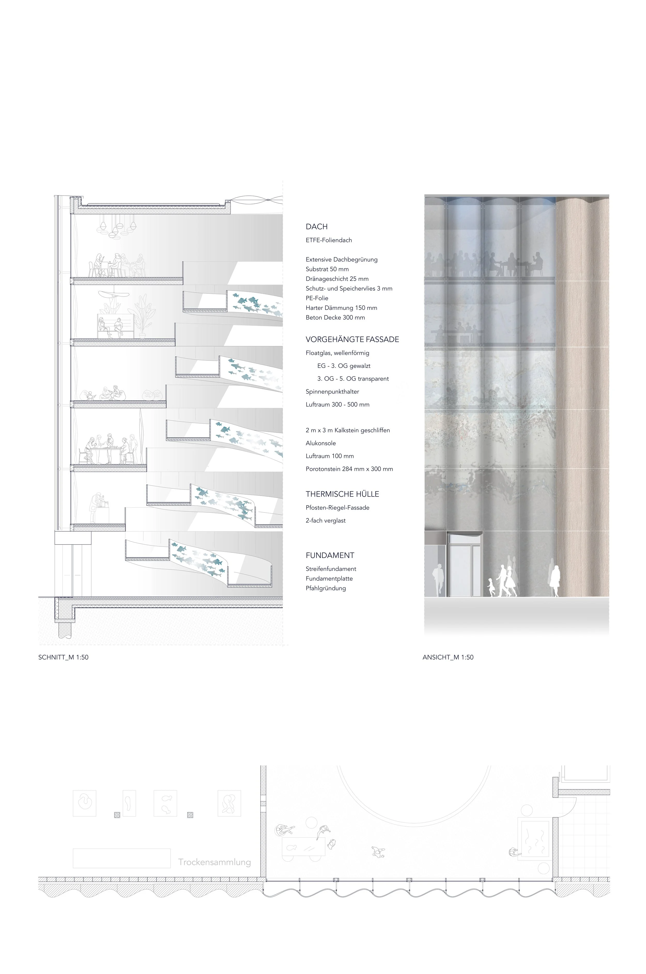 In unmittelbarer Nähe zum Ozeaneum in Stralsund soll ein Meeresforschungsinstitut entstehen. Der Standort ist als zentraler Knotenpunkt für die Forschung an Ost- und Nordsee konzipiert. Neben der wissenschaftlichen Arbeit werden hier Präparate hergestellt, die für die Ausstellung im Ozeaneum vorgesehen sind. Forschung, Präparation und Wissensvermittlung werden damit räumlich und inhaltlich miteinander verknüpft.